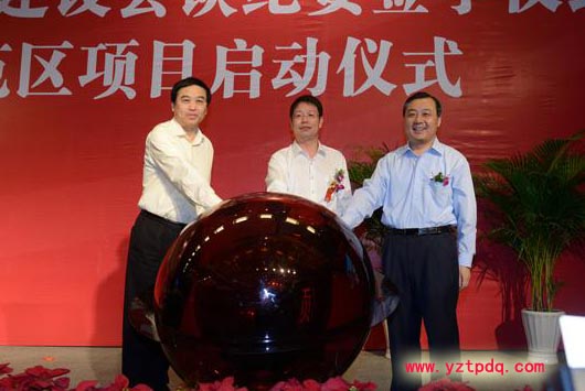 扬州市委书记谢正义、市长朱民阳、江苏省电力公司总经理单业才共同宣布扬州配电网建设和管理示范项目正式启动。