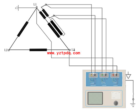 1.TPHGC-B变频式互感器综合测试仪在三角形接法变压器上进行CT测试的接线方式如图1-2所示。