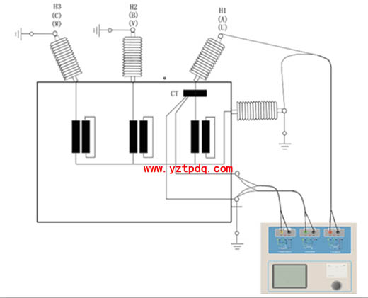 注意:一次端子H1不能接地,否则一次侧都接地了,则测试仪不能获取正确结果。