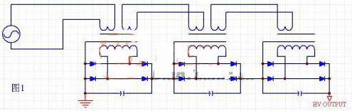高压电源最主要的技术特点,就是在于输出电压很高。高的输出电压对很多方面提出了特别的要求——元器件耐压的要求、结构设计的要求、绝缘材料的要求等。与此同时,电路结构上也有异于通常的结构。通常对于输出10KV以下的电源,可以直接采用传统的各种拓扑结构。但是对于电压更高的电源,就要对电路结构作一些修改,以满足更高电压的输出。由于变压器初级部分的功率器件的耐压限制,一般驱动部分依然是传统的开关电源拓扑,对电路结构的修改,主要是集中在变压器以及后面的整流电路上。下面主要对这两部分进行讨论。
