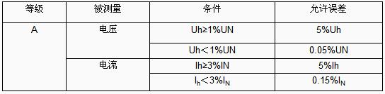 注:① UN为标称电压,Uh为谐波;IN为额定电流,Ih为谐波电流;② A级仪器频率测量范围为0~2500Hz,用于较精确的测量,仪器的相角测量误差不大于±5°或±1°。B即仪器用于一般测量