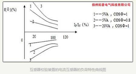 互感器校验装置的电流互感器误差与二次负荷的关系称为负荷特性。曲型的负荷特性曲线如图2所示,随着二次负荷的增加,I0/I的值也增加电流互感器的比差向负方向变化,角差向正方向变化。当二次负荷的功率因数减少时,随着δ角增加,电流互感器的比差和角差都向负方向变化。