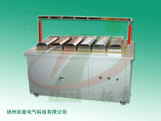 由水槽、控制台两部分组成。水槽分上下区,上区为6只小水槽,下区为试验变压器,控制台设有过流保护、零位保护、时间保护及报警等功能。