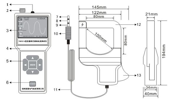 12、电流钳尺寸:194mm×145mm×40mm